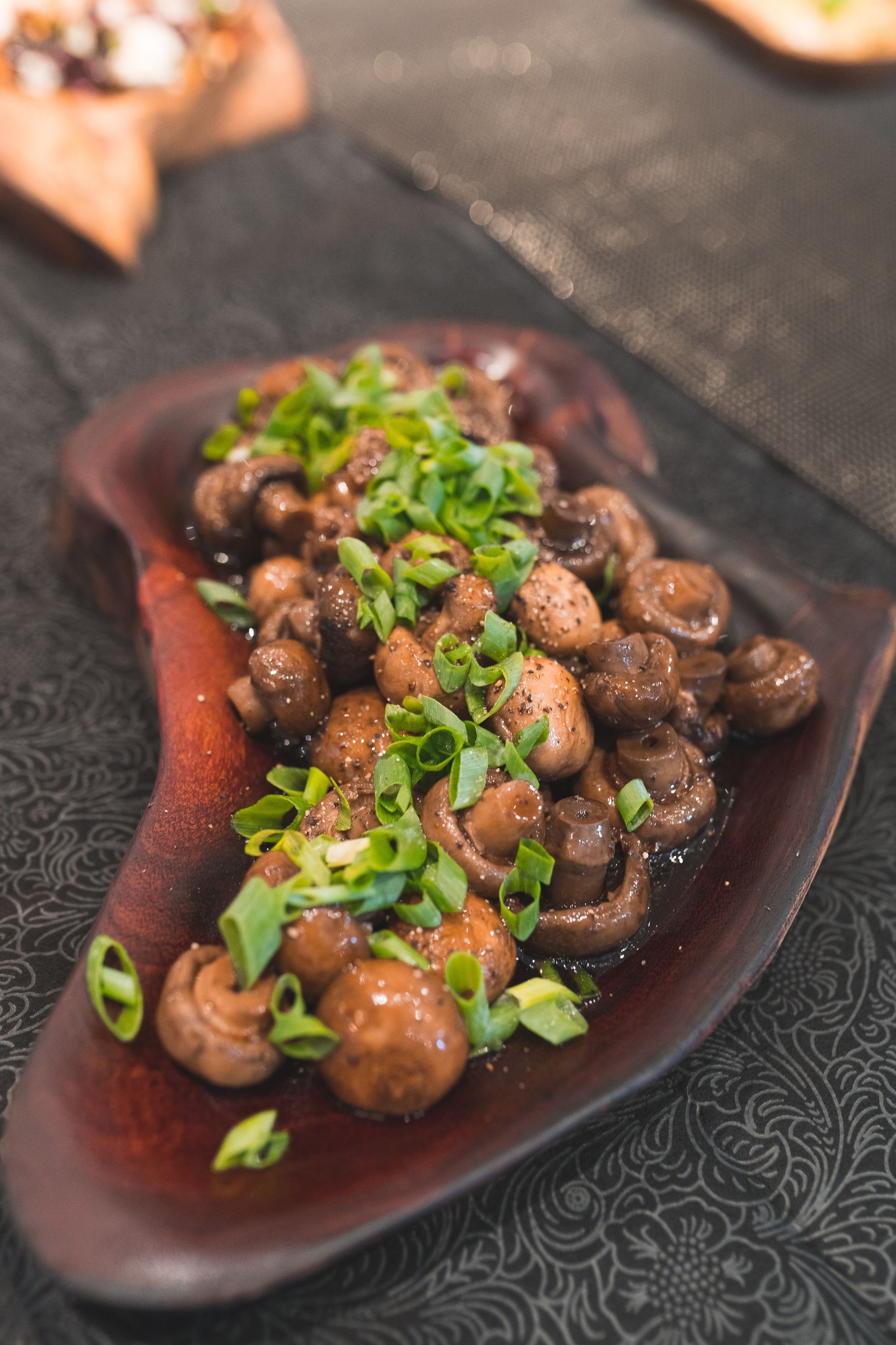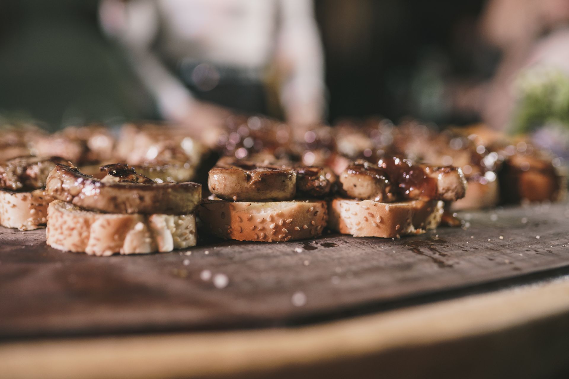 מדליוני כבד אווז נימוחים מוגשים על ברוסקטה קריספית בתיבול ריבת בצל ופתיתי מלח הימלאיה. מנה המדגישה את טעמו העשיר של כבד האווז ומייצרת ביס שמתפוצץ בפה של מרקמים וטעמים.